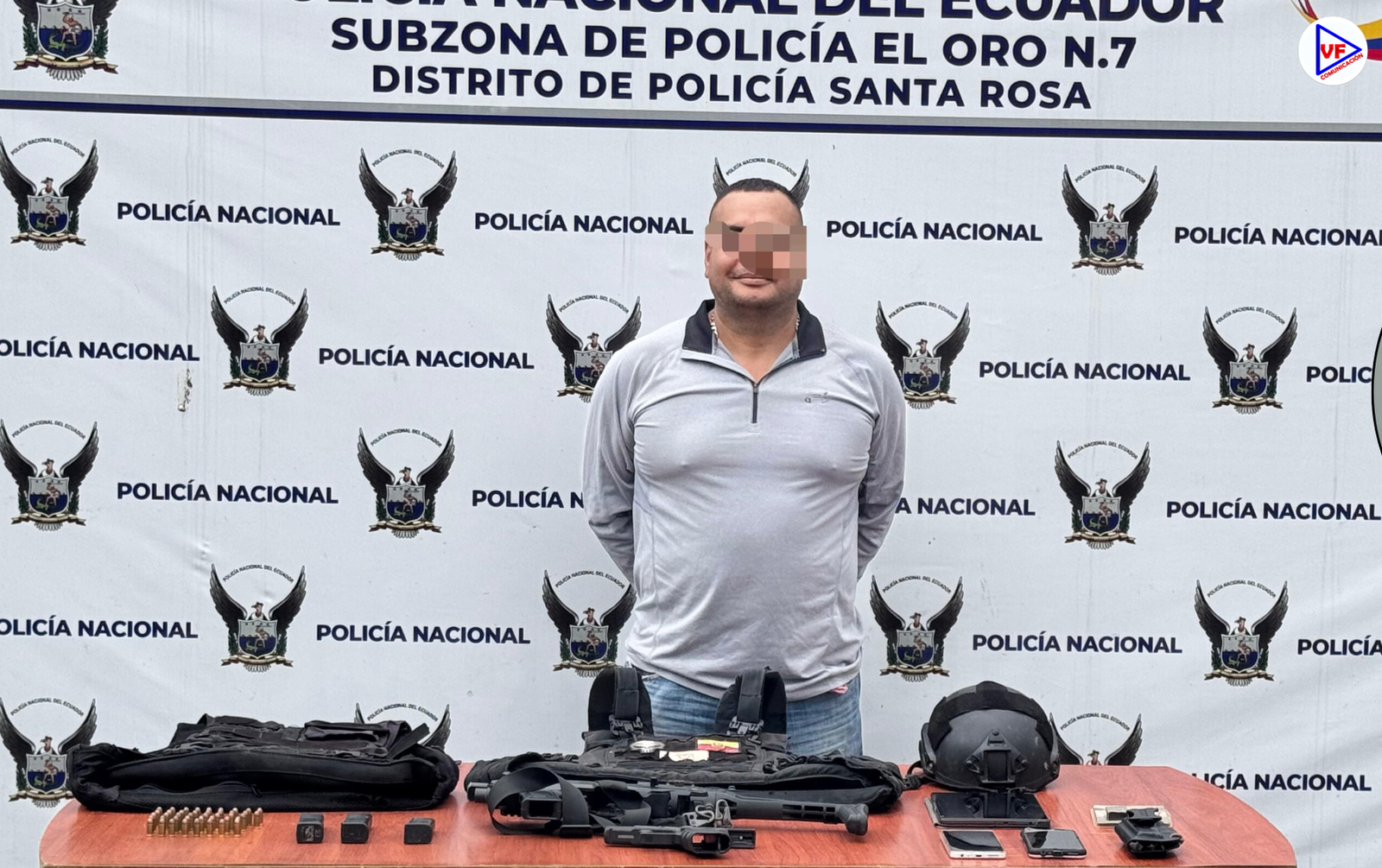 Santa Rosa, El Oro – La Policía Nacional del Distrito Santa Rosa aprehendió a Fredy Alberto Valle Feijóo, de 47 años, por el delito de porte de arma de fuego. La detención se produjo hoy, 2 de julio de 2025, a las 09:30, en las calles San Vicente y Vicente Betancourt.