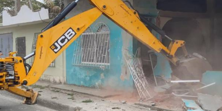 Con maquinaria, agentes de la Policía Nacional y Fuerzas Armadas destruyeron ocho casas presuntamente usadas por los grupos criminales que operan en Durán. El operativo denominado Tormenta 9 se ejecutó este miércoles 27 de noviembre de 2024.