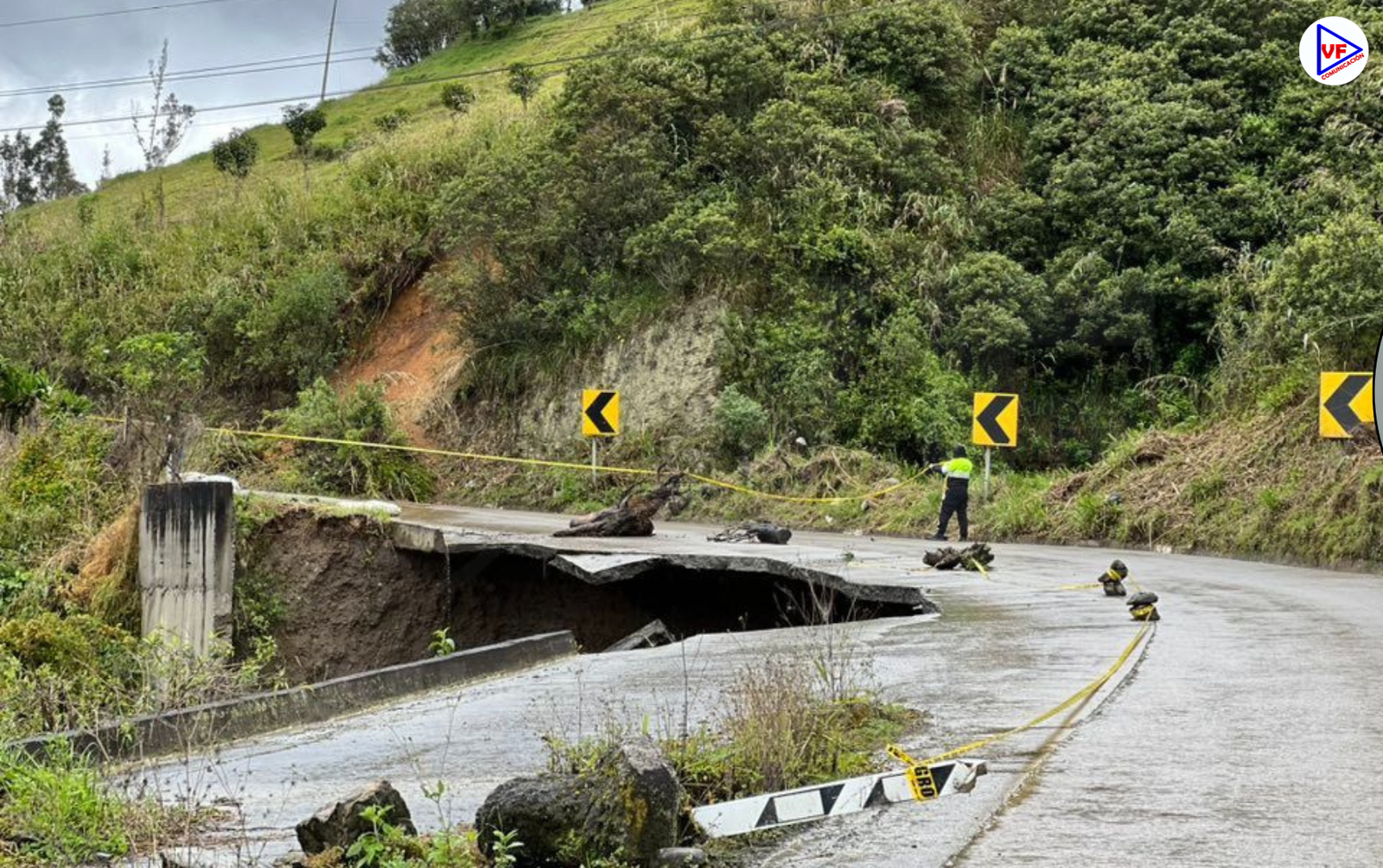 Azuay, Ecuador – La vía Paute-Guarumales-Méndez se encuentra cerrada en el kilómetro 61, específicamente en el sector Santa Rosa. El cierre se debe a un socavamiento que afectó la base de la calzada en uno de los carriles.